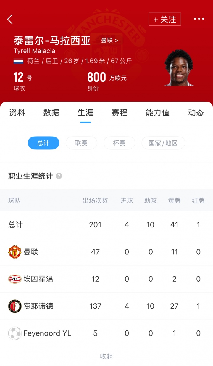 马拉西亚2022年加盟曼联,现在效劳曼联3年共出场47次,0球0助拿到11张黄牌。