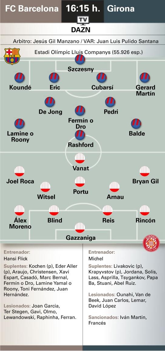 世体推断巴萨vs赫罗纳首发:拉什福德出任中锋,巴尔德左边锋