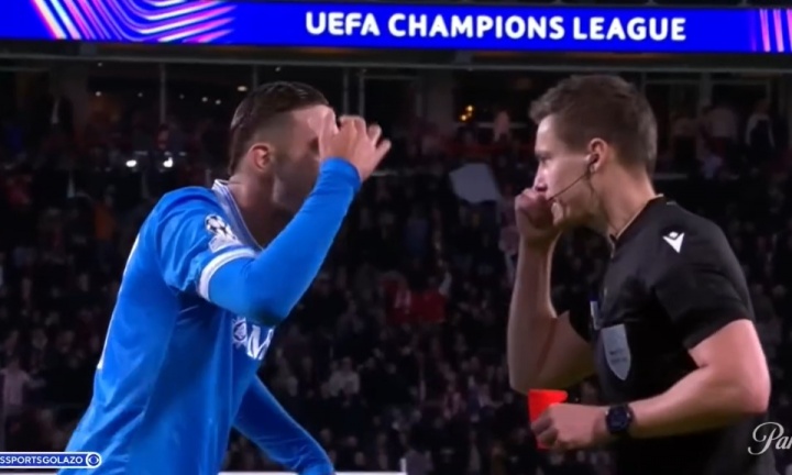 10月22日讯 那不勒斯先锋卢卡吃到径直红牌,但这可能是误判。
