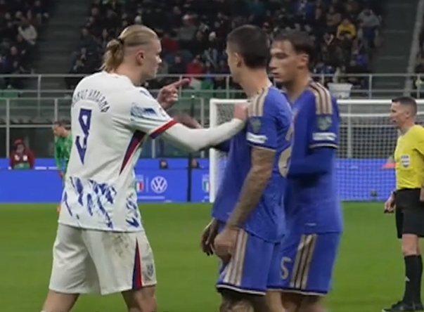 随后挪威准备主罚轻易球,哈兰德与曼奇尼再次发生突破,哈兰德的曼城队友多纳鲁马抱着他尝试劝架,但两边球员执续斗嘴,最终哈兰德和埃斯波西托各吃一张黄牌。而在争执之后仅过了10分钟,哈兰德2分钟2球反超比分。