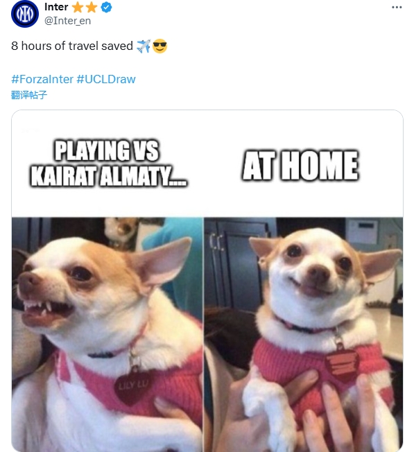 省下8小时旅程!国米晒形貌包:😧抽到了凯拉特...然则主场😎