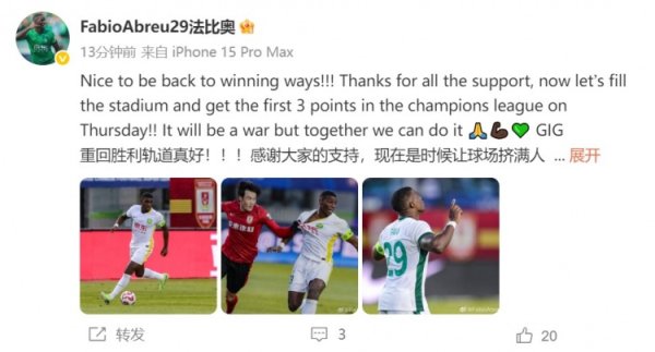 11月3日讯 国安球员法比奥更新社媒,庆祝球队本轮赢球。 中超第29轮,国安4-0大捷亚泰,法比奥2射1传。赛后,他更新社媒写说念:重回得手轨说念真好!!!感谢全球的复旧,当今是时期让球场挤满东说念主群了,争取在周四的亚冠拿下首胜!!这将是一场硬仗,但咱们和洽一心一定能赢! 本赛季于今,法比奥打进24球,位列中超弓手榜第二位,逾期瓦科1球。在亚冠二级联赛赛场,国安仍未始一胜,他们周四将对阵大埔。......查看更多
