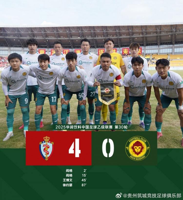 0:4海门珂缔缘 贵州筑城竞技作事联赛的第一年15胜5平10负