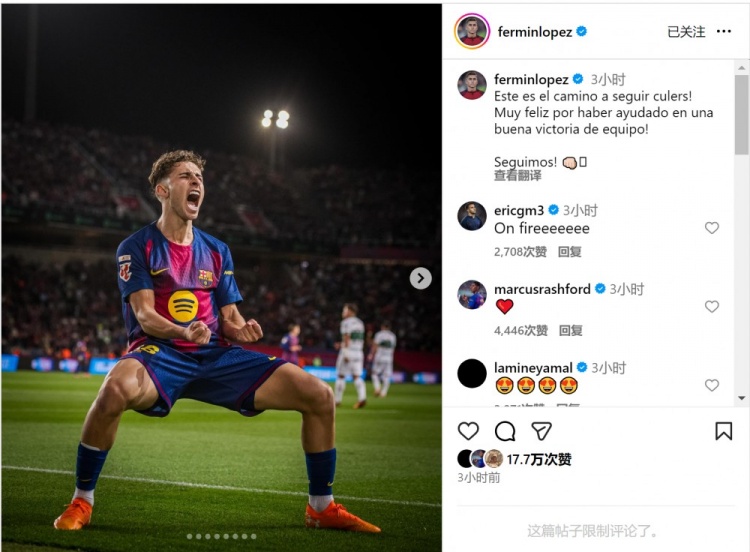 助攻双响!费尔明社媒晒情怀庆祝相片:这便是前进的标的