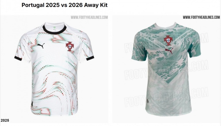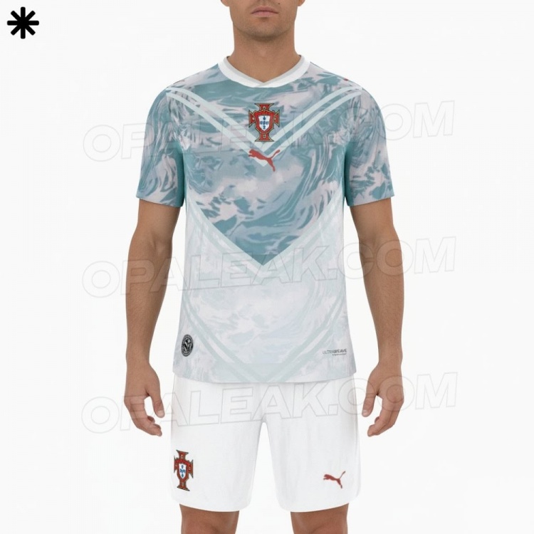葡萄牙2026年客场球衣谍照:海蓝色主颜色+V字野心 配有图案覆盖
