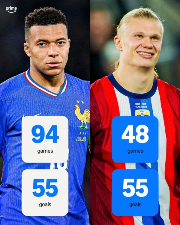 🤖记录夙夜齐是他的?哈兰德国度队进55球平姆巴佩,场次仅一半
