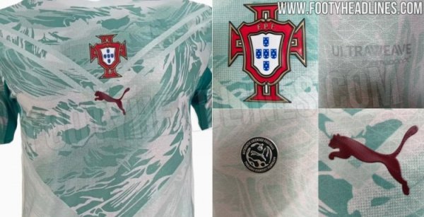 葡萄牙2026年客场球衣谍照:海蓝色主颜色+V字野心 配有图案覆盖