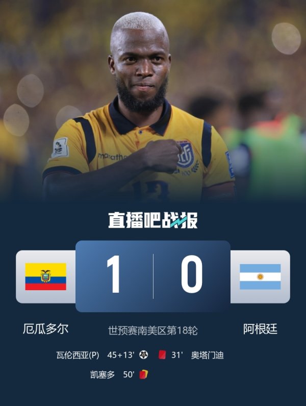 9月10日讯 世初赛南好意思区第18轮,十东谈主阿根廷客场0-1不敌十东谈主厄瓜多尔。据阿根廷媒体TyC报谈,因为本场失利阿根廷将在最新一期天下排行丢掉天下第一的位置。 该媒体示意:“不敌厄瓜多而后,最新一期天下排行阿根廷队的天下第一将被西班牙替代,此外法国队也将朝上阿根廷排辞天下第二。自2023年4月以来,阿根廷一直排行天下第一。” “不外阿根廷队也将迎来好音信,那便是躲避‘天下第一从未染指天下杯冠军’的魔咒,从历史教会来看,天下排行第1位的球队,从未获得过天下杯冠军。”......查看更多