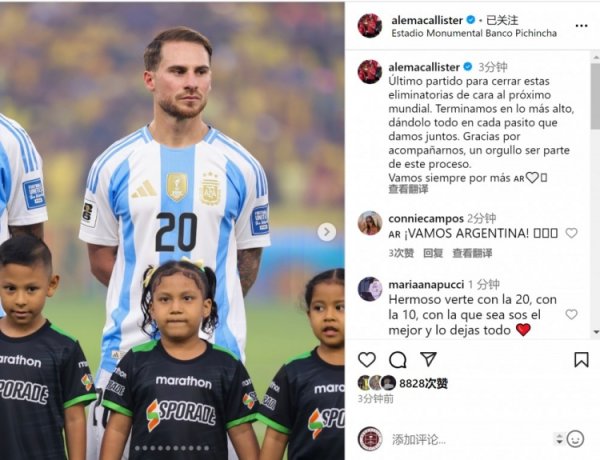 麦卡利斯特社媒:咱们以榜首位置截止世初赛,很走时能参与其中