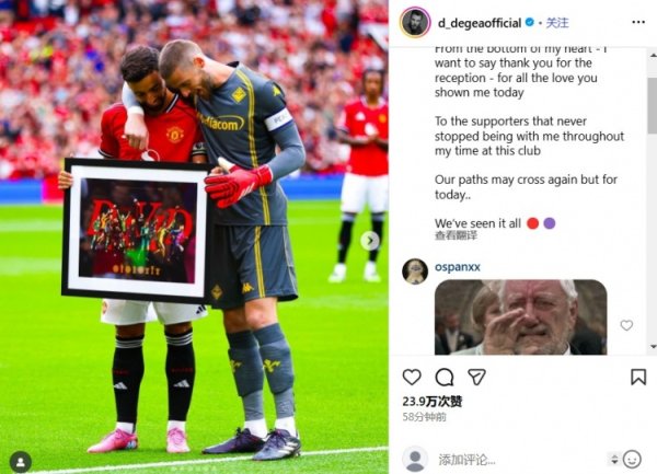 8月10日讯 季前友谊赛,佛罗伦萨赶赴老特拉福德和曼联交手。关于佛罗伦萨门将德赫亚而言,这场比赛有着疏淡的真义,因为老特拉福德是他也曾的家。 在应付媒体上,德赫亚写谈:关于我和我的家东谈主而言,重返老特拉福德是一个神奇的时分,这里是我的家。我打心底思说感谢你们今天的接待,感谢你们今天向我展示出的通盘的爱! 感谢那些在我效率这家俱乐部技术长久撑握我的球迷们! 咱们的谈路好像还会再次交织,但至少在今天...... 咱们照旧见证了一切!......查看更多