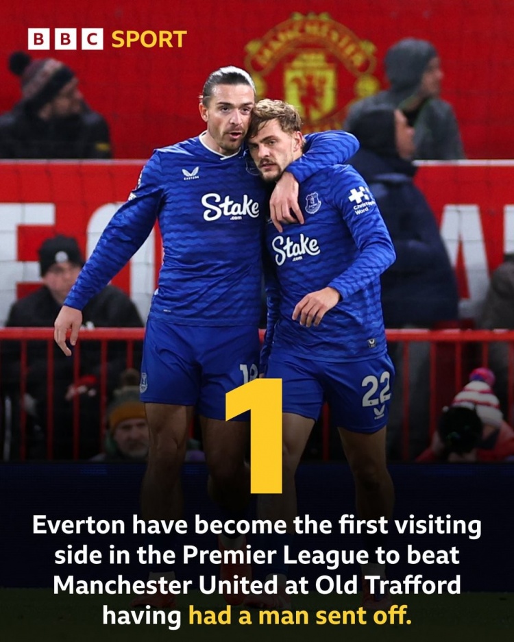 破天荒!少打1东谈主但攻陷老特拉福德,埃弗顿是英超历史第一队