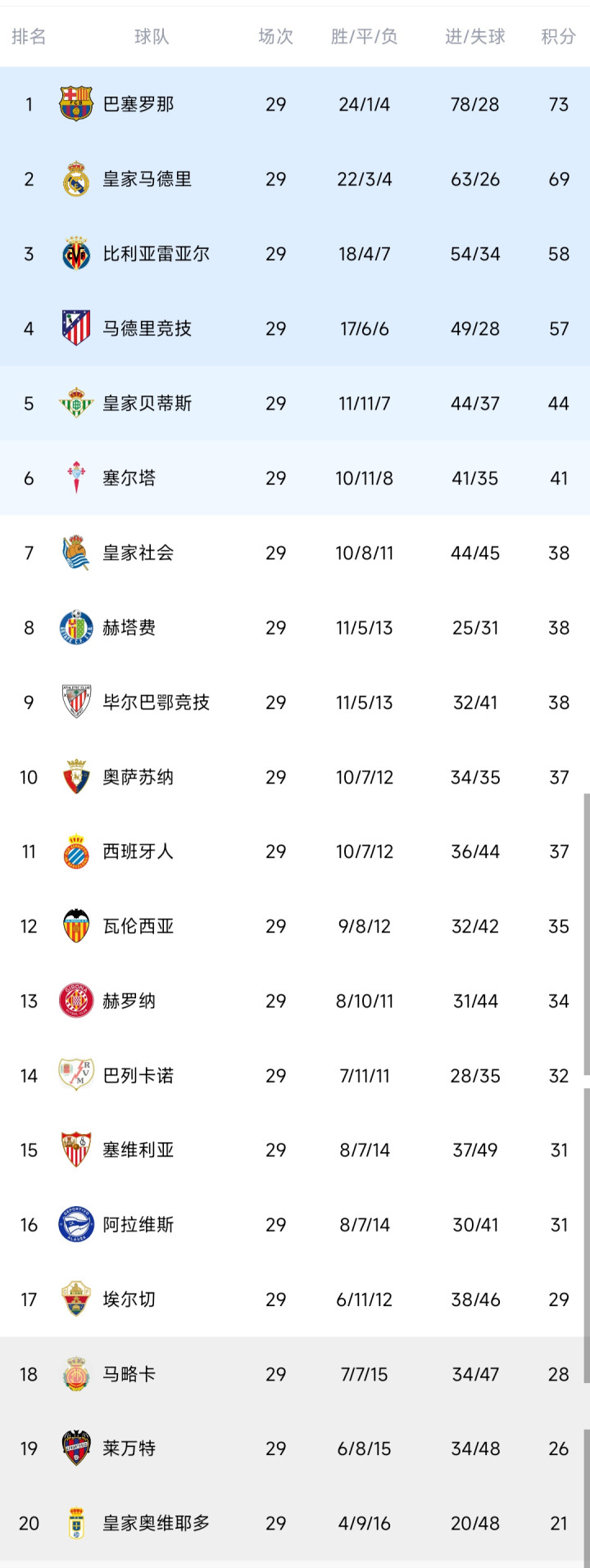 英超-西甲-意甲-德甲-法甲最新积分榜 阿森纳巴萨国米拜仁巴黎领跑