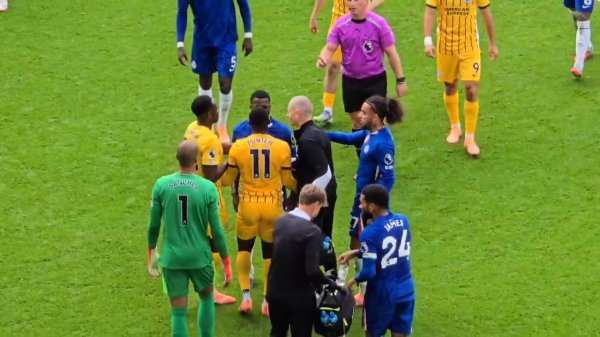 09月28日讯 英超联赛第6轮,十东谈主切尔西1-3布莱顿。 球迷拍到视频,两队球员发生龙套,一开动凯塞多与布莱顿球员明特发生厉害。 随后布莱顿后卫范赫克走过来收拢凯塞多手臂,凯塞多用劲挣脱。范赫克痛苦倒地,巴迪亚西勒向前思把范赫克拉起来。......查看更多