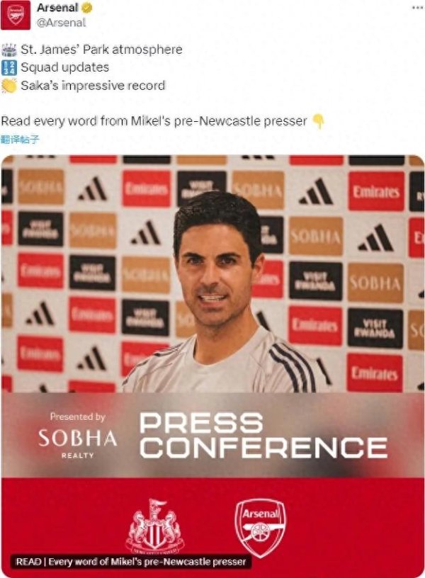 阿尔特塔出席了赛前新闻发布会,咱们只看关节内容。 厄德高的最新情况能说说吗? 畴昔两天厄德高齐不错随队磨练,是以但愿他不错赶上这场比赛。 萨卡上场比赛被替换下场,但这是提前计算好的出场本领是吗? 是的,没什么好说的。我认为萨卡按照咱们的预期出战了上场比赛,他弘扬很好,嗅觉也很好,萨卡畴昔几天也会跟队磨练。 那么他不错出战这场比赛吧? 是的。 你之前说马杜埃凯还要再接受一次扫描,如故再次扫描了吗? 莫得,还没到时候。 全宇宙的东谈主齐在说萨利巴续约达契约了,但阿森纳还莫得官宣,......查看更多