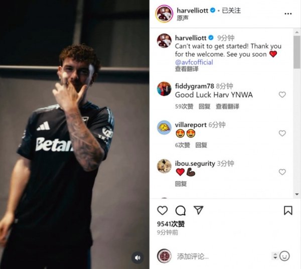 埃利奥特晒加盟维拉视频: 迫不足待念念要启动, 感谢全国的接待