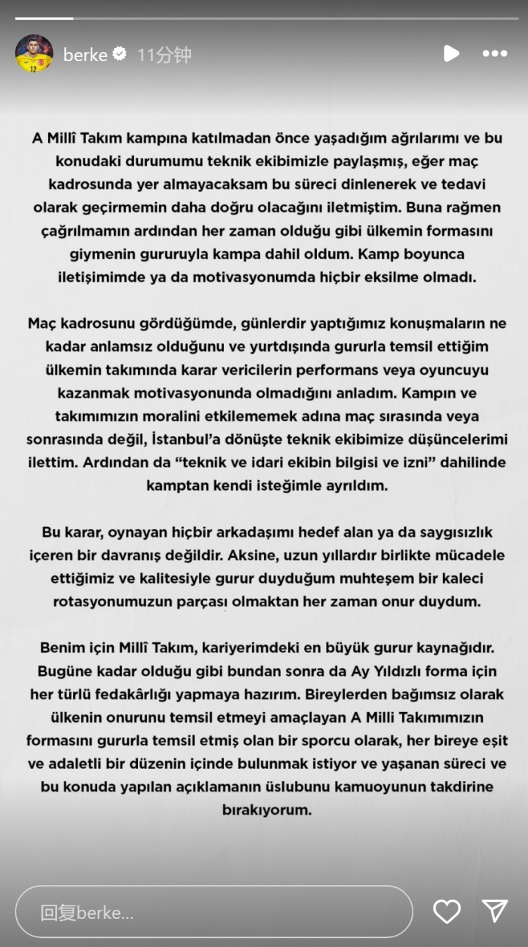 厄泽尔社媒发文回话土耳其足协:“在参加国度队集训前,我已向时候团队讲明了身体情景及干系难烦嚣题,并暗示若无法干预比赛名单,应通过养息和诊疗来收复。尽管如斯,接到征召后我仍怀着穿上国度队战袍的自恃感加入集训。集训期间我的通常作风和斗志永远未打扣头。