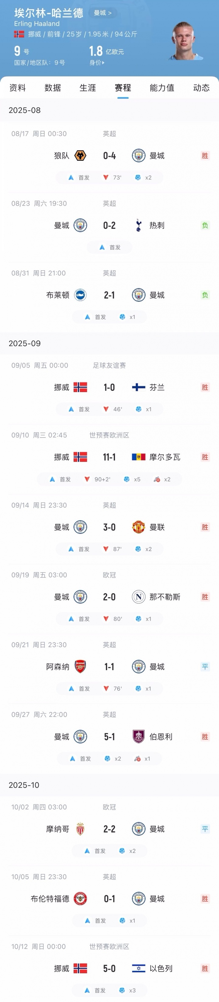哈兰德本赛季于今数据