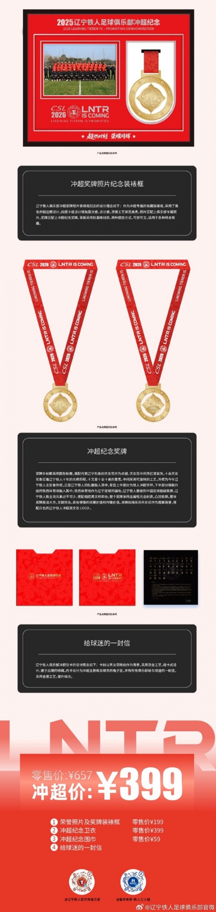 10月27日讯 中甲辽宁铁东说念主官方音问,俱乐部推出冲超精良礼盒,10月30日14点开售。