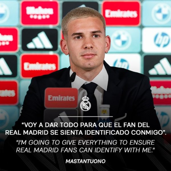08月14日讯 偶合18岁寿辰的马斯坦托诺在本日正经亮相皇马,他也在亮相后摄取了媒体的采访。 以下是发布会好意思满实质↓ 你当今嗅觉如何? 马斯坦托诺:“我尽头欢笑,内心充满喜悦。为皇马着力一直是我的期望,这对我来说即是期望成真。” 得知皇马想要签下你的那一刻是什么感受? 马斯坦托诺:“我要尽头感谢球迷们的认真。当这个音讯出现并最终证及时,我那时还在河床队,我的心想皆放在河床。但当我来到这里后,我的一齐详确力就转向了这家伟大的俱乐部。” 你如何界说我方的踢球格调? 马斯......查看更多